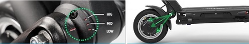 1. Улучшенная подвеска: изменение угла подвески по высоте, регулируется 3-мя уровнями (LOW, MID по умолчанию, HIG), адаптируясь под окружающую среду и вес водителя.