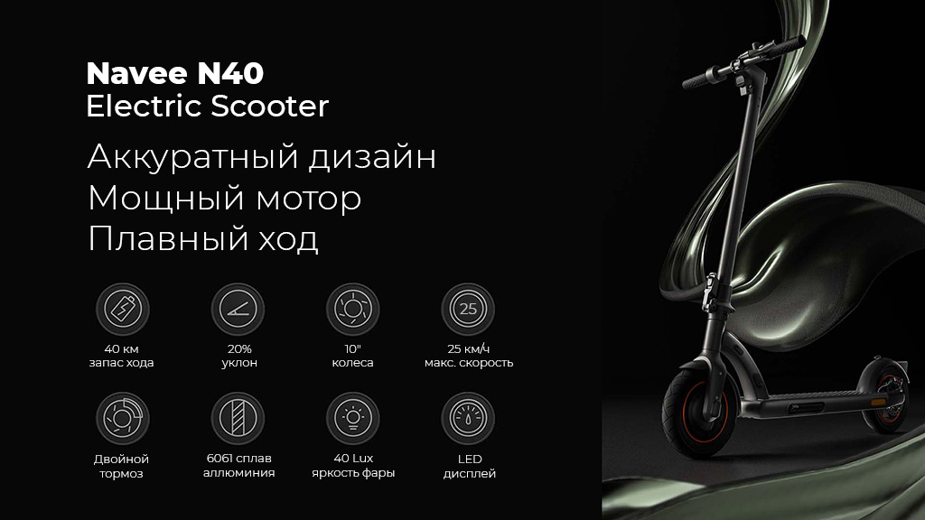 Электросамокат Navee N40 относится к категории Электросамокаты. Доступна доставка курьером, транспортными компаниями. Оплата наличными или безналичным расчетом. Чтобы заказать Электросамокат Navee N40, оставьте заявку на сайте или позвоните по указанному телефону. Наш специалист проконсультирует Вас по всем вопросам.